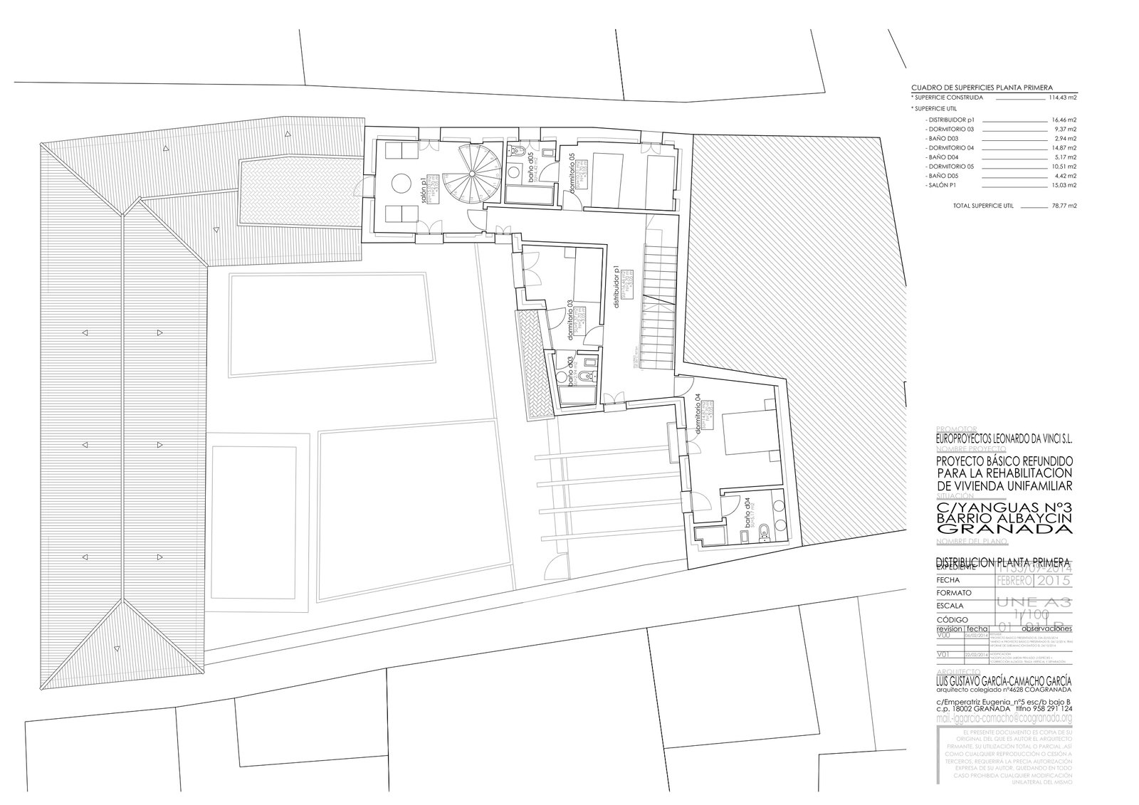 En el resto de plantas se ubicarán estancias “de noche”. En planta primera, se recuperará un mirador con vista a la muralla nazarí.