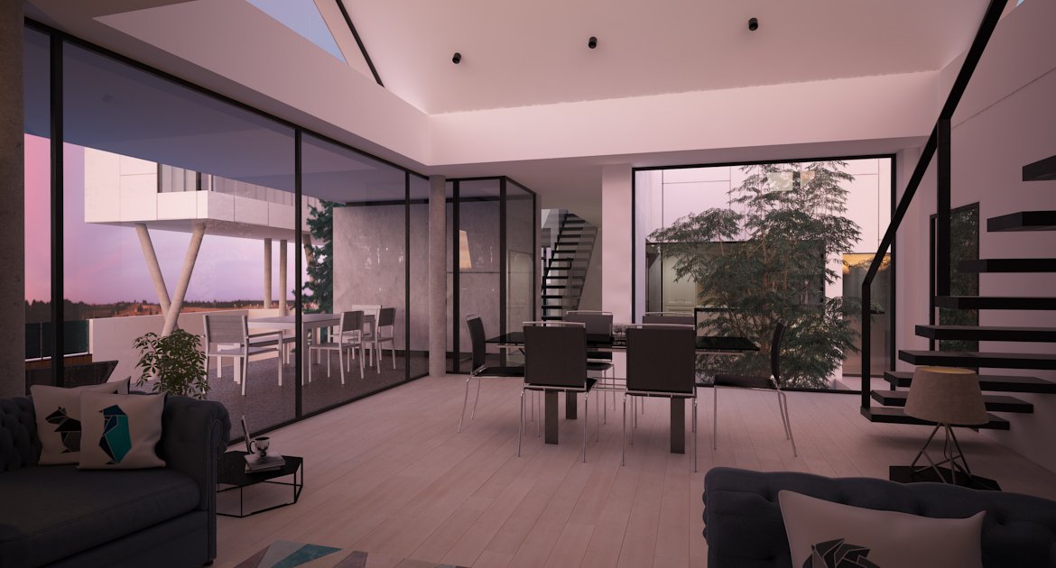 Estos son los dos objetivos que el proyecto pretende conseguir . El primero surge de la propuesta por parte del cliente para la obtención de una vivienda fuera del estándar pre-existente en la localización del solar, con vivienda unifamiliares adosadas siguiendo el esquema tradicional de retranqueo a fachada, patio posterior y distribución tipo “pasillo”. La vivienda tendría que erguirse fluida y dinámica (acogiéndonos a la tipología de vivienda unifamiliar aislada).