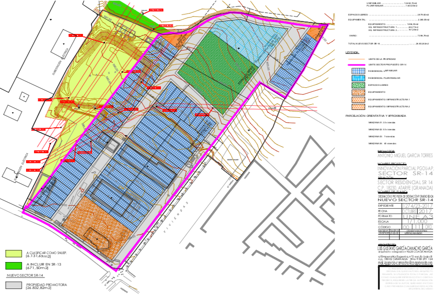 La planificación y por ende, el desarrollo urbanístico que pretende el presente AVANCE viene impulsado por la propiedad mayoritaria de los suelos incluidos en el sector residencial denominado SR-14 por el planeamiento general del municipio de Atarfe en la figura de Normas Subsidiarias (en adelante NN.SS./94); propiedad que se corresponde también con la mayor privada de los suelos incluidos en el ámbito del sector SR-14, así grafiado en el vigente P.G.O.U.- Adaptación Parcial de las NN.SS./94 a la LOUA (en adelante P.G.O.U-AP).